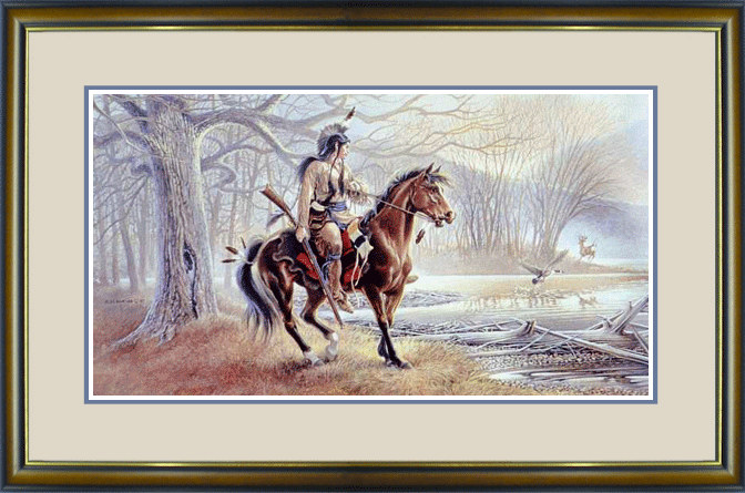 From the West beyond the Ohio River this Shawnee has come to hunting grounds protected and shared by the Indian tribes. Stretching eastward to the Blue Ridge Mountains, this land is trodden by great herds of elk and buffalo and teems with smaller game. So valuable a place that, in the words of Logan, great chief of the Mingoes, "all may hunt, but none may live there."